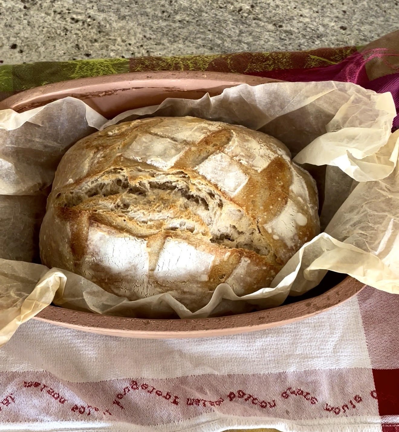 Dans ma formation je préconise une cocotte, un bocal en verre avec un couvercle, une balance, un torchon, un saladier, un four traditionnel. Bien entendu, réaliser son pain sans cocotte est envisageable aussi, mais vous qui me connaissez, vous savez à quel point elles me sont chères et ma recette est confectionnée à l'aide de cocotte.